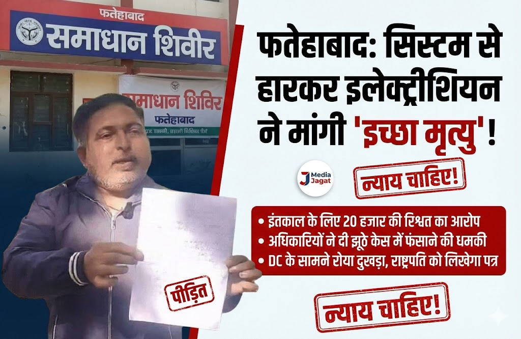 फतेहाबाद (Media Jagat Bureau): हरियाणा में आम आदमी की सुनवाई किस हद तक अनसुनी की जा रही है, इसका एक जीता-जागता उदाहरण फतेहाबाद में देखने को मिला। यहाँ सरकारी दफ्तरों के चक्कर काटकर थक चुके एक शख्स ने अब सिस्टम से हार मान ली है और जिला उपायुक्त (DC) से 'इच्छा मृत्यु' (Euthanasia) की गुहार लगाई है।