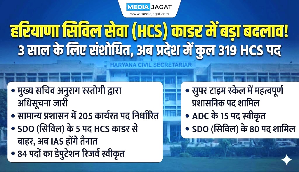 बड़ी खबर: हरियाणा सिविल सेवा (HCS) काडर में बड़ा बदलाव, 3 साल के लिए हुआ संशोधन, अब कुल इतने होंगे अधिकारी