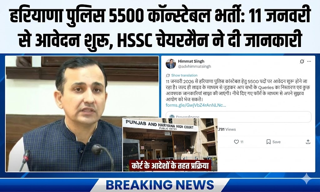 Haryana Police Bharti 2026: खाकी वर्दी का सपना होगा पूरा! 11 जनवरी से शुरू होंगे आवेदन, HSSC चेयरमैन ने किया बड़ा ऐलान
