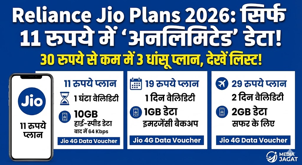 Reliance Jio Plans 2026: सिर्फ 11 रुपये में 'अनलिमिटेड' डेटा! जिओ ने नए साल पर मौज करा दी, 30 रुपये से कम में देखें 3 धांसू प्लान