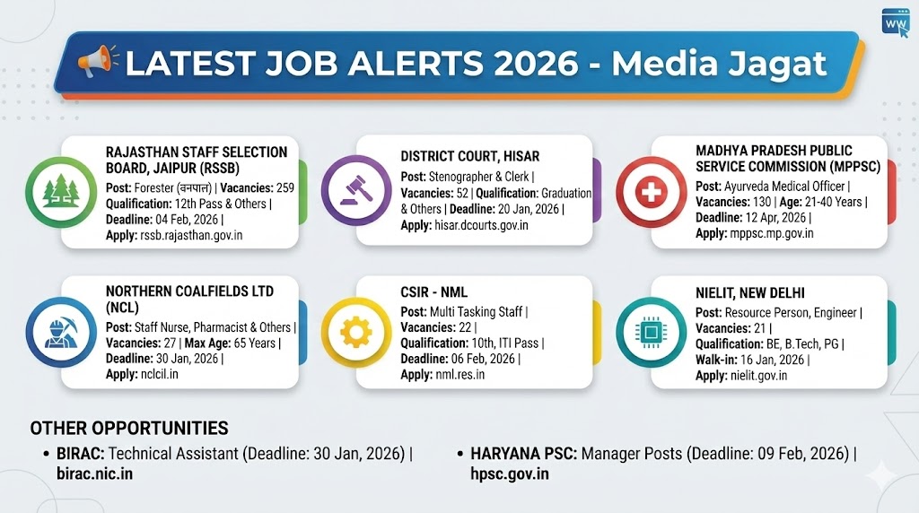 Sarkari Naukri 2026: 10वीं पास से लेकर ग्रेजुएट्स के लिए सरकारी नौकरी का सुनहरा मौका! राजस्थान, हरियाणा और MP में निकली बंपर भर्तियां